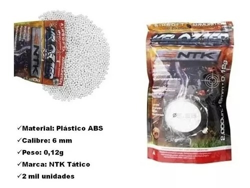 Com peso de 0,20g e calibre 6mm, são compatíveis com a maioria das pistolas e rifles de Airsoft tipo Spring, GBB e AEG. Embaladas com 5.000 unidades, oferecem excelente custo-benefício para treinos e jogos prolongados.